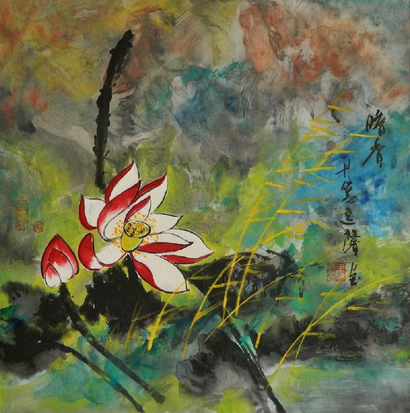 Painted in 2012, this signed original Chinese Brush (Watercolor) Floral Landscape impression painting is 26" x 26”. It is painted on double-layer rice paper. Incorporate is a 2.5" silk border surrounding the actual painting. This painting is not formally framed. This painting can be shipped in a standard mailing tube for protection. The original painting, if purchased, includes a signed “statement of authenticity” with the Artist’s Biography. This statement can be used by the buyer for insurance, estate planning, personal asset protection, or resale of this painting, if desired. LRB Fine Art reserves all copyrights of original and/or reproductions. Reproductions on canvas can be purchased at: https://fineartamerica.com/profiles/min-w or www.artpal.com/ontap456