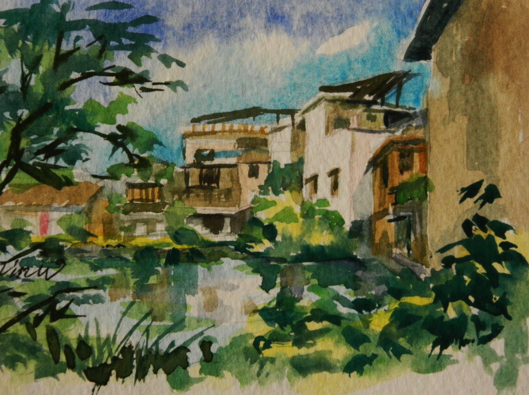 Painted in 2012, this signed original watercolor landscape impression painting is 5.5" x 3.5”. It is painted on a framed stretched canvas. This painting is formally framed, ready for display, and included in the price if purchased. Photos are available upon request of this framed painting. The original painting, if purchased, includes a signed “statement of authenticity” with the Artist’s Biography. This statement can be used by the buyer for insurance, estate planning, personal assets or resale of this painting if so desired. LRB Fine Art reserves all copyrights of original and/or reproductions. Reproductions on canvas can be purchased at: https://fineartamerica.com/profiles/min-w or www.artpal.com/ontap456
