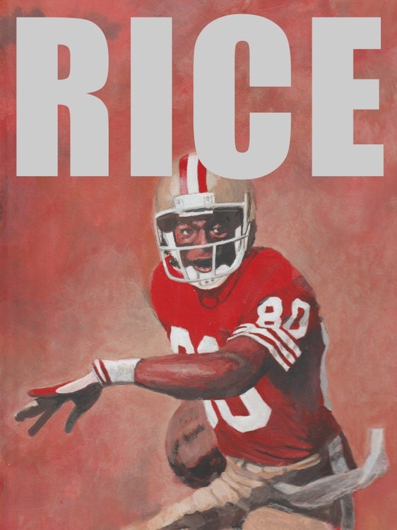 This original artwork depicts Jerry Rice in motion—hands reaching, body balanced, fully locked into the play. Designed with bold color, strong contrast, and graphic typography, the piece blends fine art realism with modern sports poster aesthetics. The composition emphasizes timing and precision, reflecting the traits that made Rice the most reliable wide receiver in NFL history. Powerful, energetic, and unmistakable, this artwork is ideal for collectors and fans who appreciate football legends captured at their peak. A dynamic tribute to excellence.