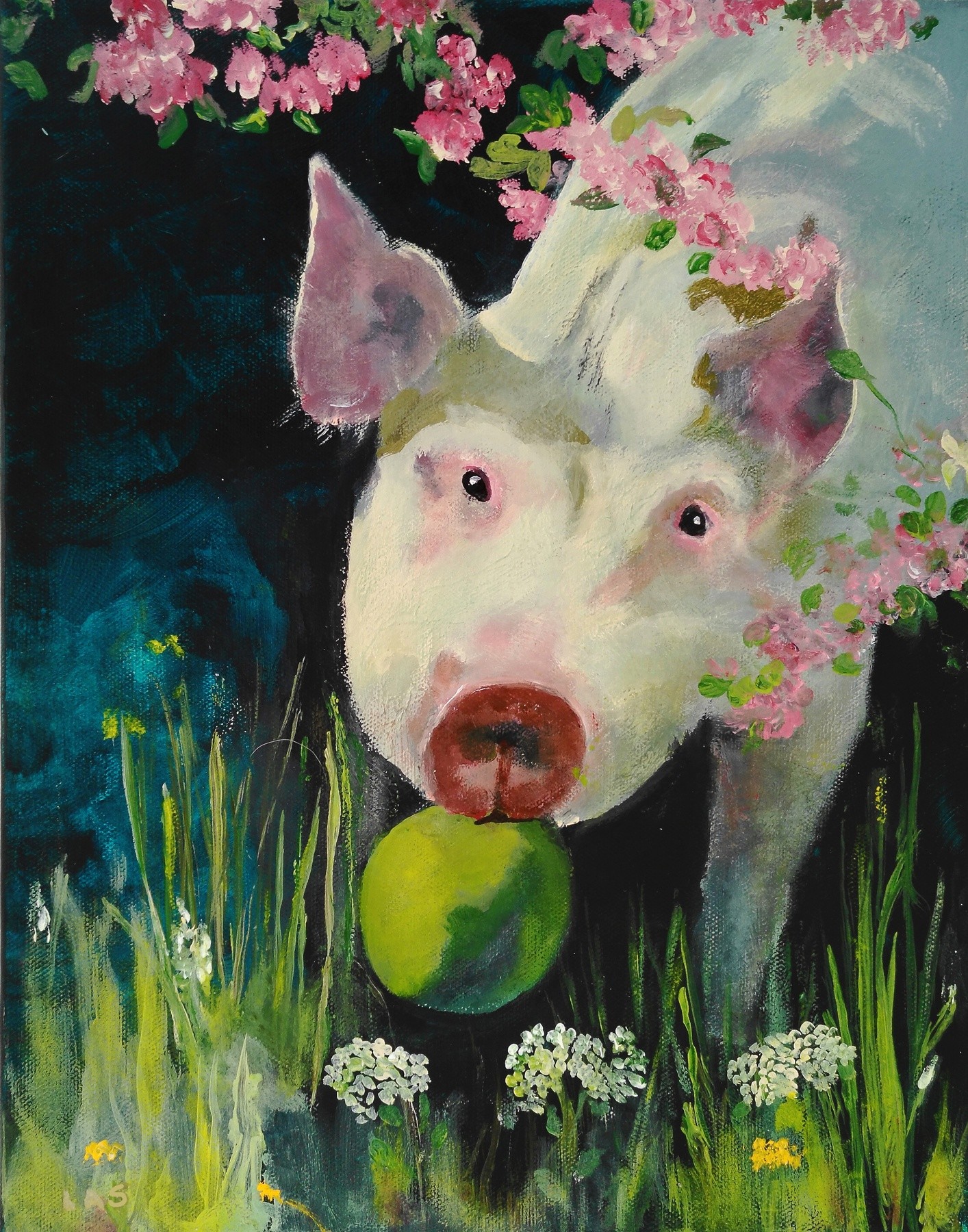 Artist Reply: So happy to have you following my work and, thanks for adding me to picture of the day. This is actually my pig Petunia except she is about 200 pounds and, she lives with my other pig Porky.. If you check out my work you will see I have multiple pig paintings. Smile!