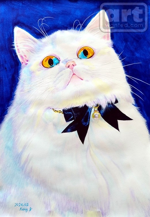 Stars (26.5 x 38 cm, gouache on paper, 2026 finished) This cat's eyes are so beautiful and unique, with contrasting colors colliding together. It looks up at the starry sky, and I am willing to pluck all the stars for it.