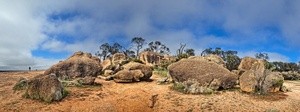 Boulders and trees on the top of the Wave Rock in Hyden, Western Australia