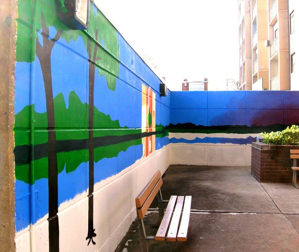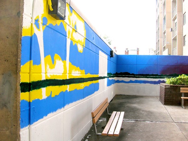 Mural: 2nd time recording 'roughs' some areas are cleaned up and complete. (I've had to let go my 'realist' ethic inorder to complete the mural before the below temperatures are here.)