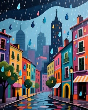 Colorful Rainy Cityscape