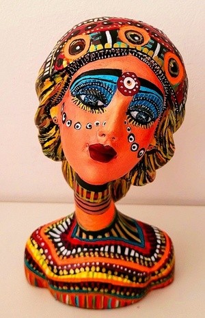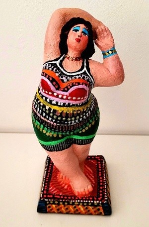 Woman clay sculpture that I bought and painted with acrylic color. Mirit Ben-Nun Israeli artist.