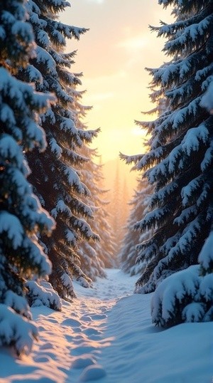Golden autumn forest with sunlight beaming through trees onto a leaf-strewn path.