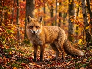 Majestic red fox pauses amidst the vibrant colors of an autumn forest