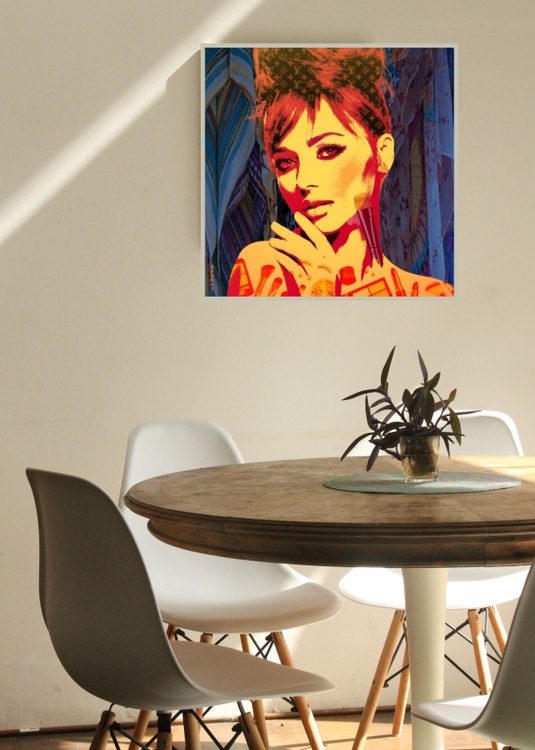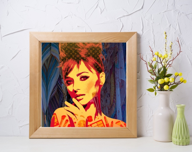Step into the world of modern beauty and confidence with *Radiance Unveiled*. This artwork celebrates the unapologetic joy of self-expression and the magic of feeling beautiful. The woman at the heart of this piece radiates strength and allure. Her gaze is captivating, exuding a sense of self-assured elegance that comes from knowing who she is and embracing her power. The warm and vibrant hues—rich oranges and fiery reds—illuminate her features, echoing the vibrancy of her spirit. Her skin is adorned with playful yet powerful symbols of beauty: makeup brushes, blush compacts, and luxurious palettes. These elements are more than just cosmetics; they represent the rituals of self-care and the empowering act of transforming one's outer self to match the inner spark. Look closely, and you'll notice familiar patterns of iconic brands woven through her hair, a nod to the modern-day woman’s love for luxury and the statement that fashion makes. It's a celebration of indulgence, a recognition of the way high-end brands have become intertwined with identity and aspiration. The soft, flowing scarves in the background add a whisper of sophistication, a subtle reminder that style isn't just about appearance—it's an experience. *Radiance Unveiled* isn't just a portrait; it's a love letter to self-expression and the art of looking and feeling your best. It’s about embracing the joy of beauty, the confidence that comes from dressing up, and the thrill of wearing pieces that tell the world who you are. This Limited Edition Giclée Print invites you to step into this vibrant universe, where beauty meets confidence and where every choice you make—be it makeup, fashion, or attitude—becomes a bold statement of self-love. Imagine this piece in your space, radiating positivity and celebrating the way beauty can uplift and empower. It's more than art—it's a celebration of you and the beautiful way you own your world. #ModernArt, #DigitalPortrait, #BeautyArt, #FashionArt, #EmpoweredWomen, #LuxuryLifestyle, #ContemporaryArt, #MakeupArt, #SelfExpression, #IconicStyle, #FashionLovers, #ArtForSale, #LimitedEditionPrint, #LuxuryArt, #ArtAndBeauty, #VibrantArt, #StatementArt, #GicleePrints, #EmpowermentThroughArt, #BoldAndBeautiful, #portraits, #digitalart #RadianceUnveiled