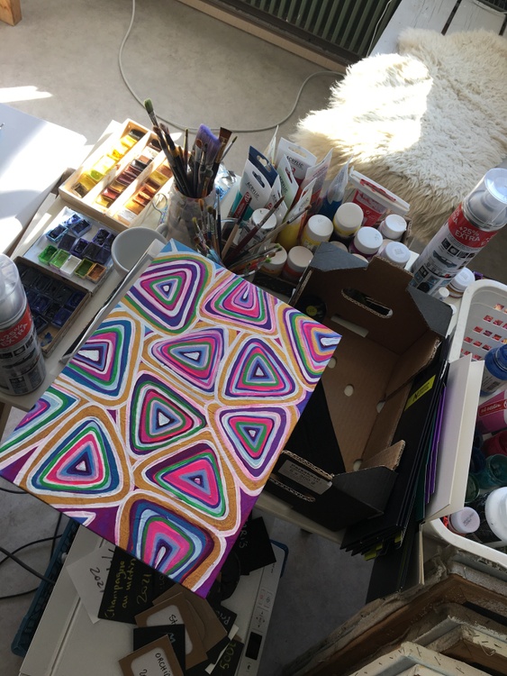 Fun positive artwork on artistic panel. Size 33*24cm, sprayed with transparent acryl.