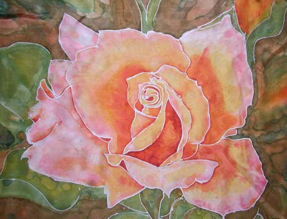 Peach rose silk painting
