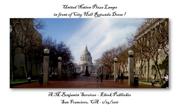 City Hall behind United Nation Plaza lamps