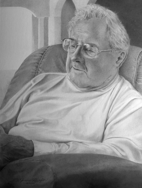 30" x 40" Pencil. This was my first and only attempt at using a smooth illustration board. The surface was too smooth to get the dark places dark enough. I would love to try another at this size but a better working surface. It is also very costly to frame a piece this size.