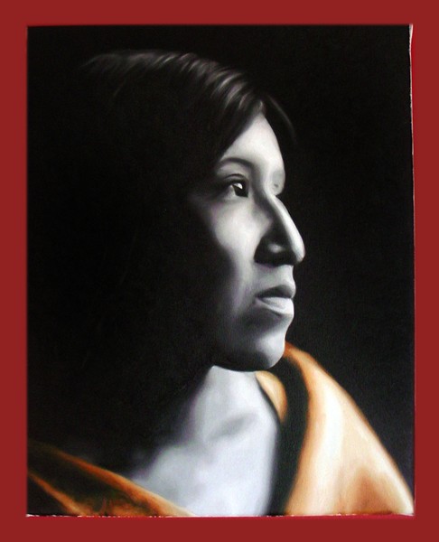 american beauty - an anonymous native american woman painted from a photo from the late 1800's. thought this was such a wonderful photo and decided to paint it with a bit of color in her clothes