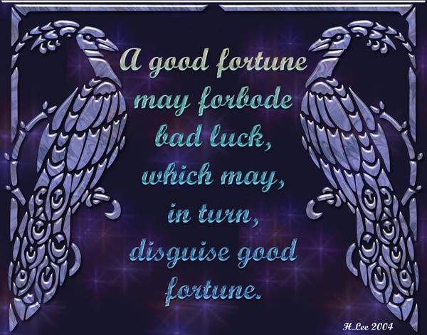 Do not overjoy with good fortune and saddened over a bad luck. There are always the unforeseeable turns.