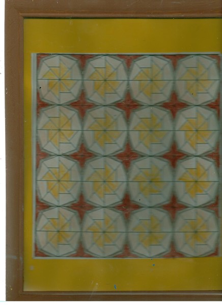 Hand brown stars outlined by black color pencil. Color pencil yellow fans outlined by meduim color pencil yellow on yellow paper in hand painted brown frame