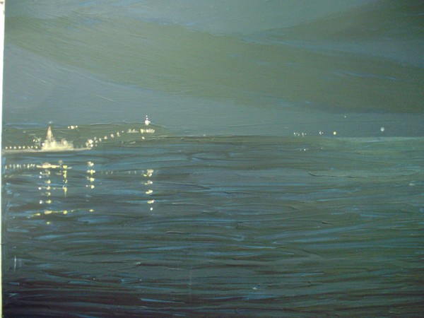En la playa de Gijón... Los reflejos sobre el mar, en el medio de la noche, Contémplanse al pasear.