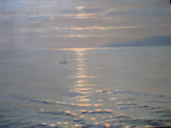 Queda un mástil solitario, en la mar, junto a Gijón. Mar y cielo, Gris y azul...