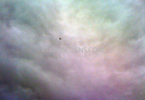 photograph of a plane flying through the cloud formations and variances in hue in the sky (purchase print has no watermark)