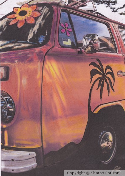 The sun is out, the Vw Festival season is in full swing, what a better way to celebrate summer than in a vintage type 2 Vw bay window van. hand Drawn in Pastel & Ink