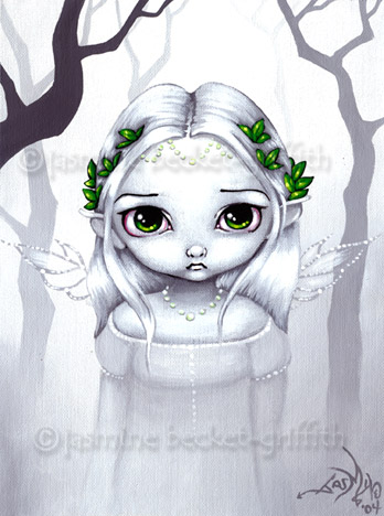 A 9"x12" cutie - acrylic paints on canvas. She's taken the last leaves of the season, and put them in her hair. This image copyrighted © 2004 by Jasmine Becket-Griffith. All rights reserved. Do not use for any reason without express permission from the artist.