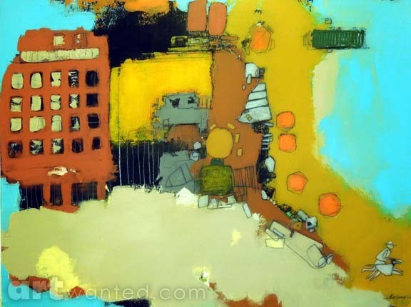Acrylic, pencil, crayon on painting panel 36"x 48" x1.5" ( 91,44cm X 121,92cm)