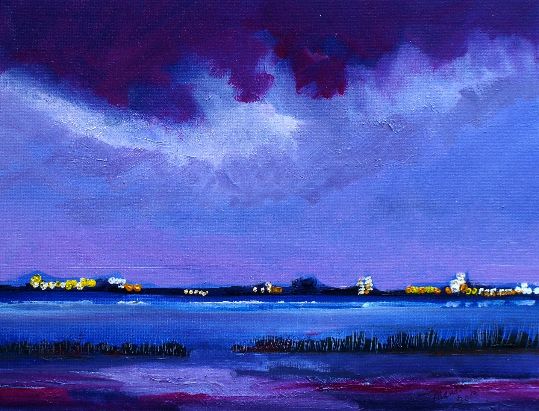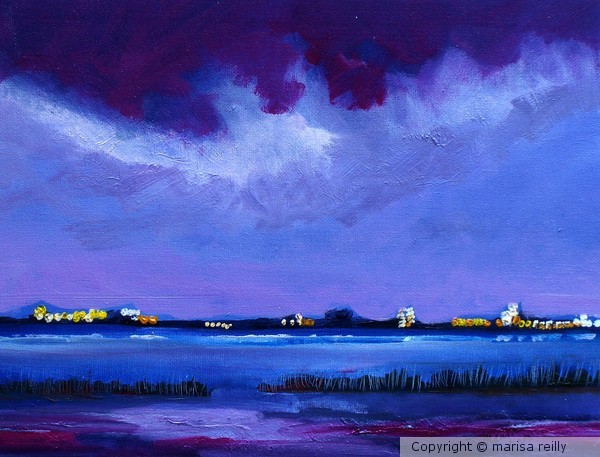 oil on canvas panel, 11 x 14 inches. Dusk at the public boat dock on the St. Johns River. This particular section of the river is called Lake Monroe due to the wideness of it. It is one of the rivers in this country that flow "uphill" to Jacksonville. I have watched many sunsets from this point. Looking across to the other side which is Sanford, Florida