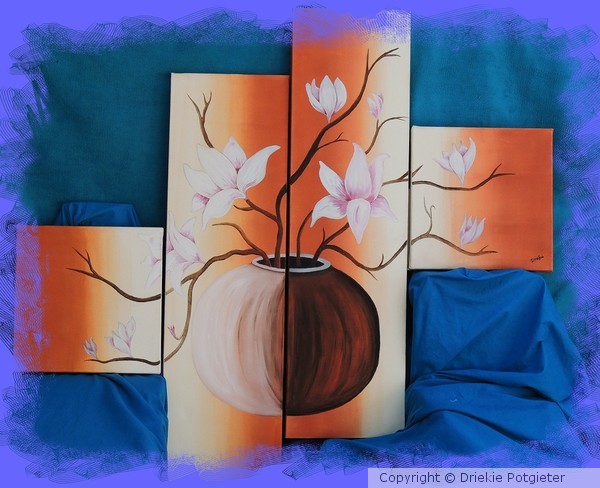 modern oil painting flower over four - stretched canvas - 2 x 25cm x 90cm, 2 x 25cm x 25cm
