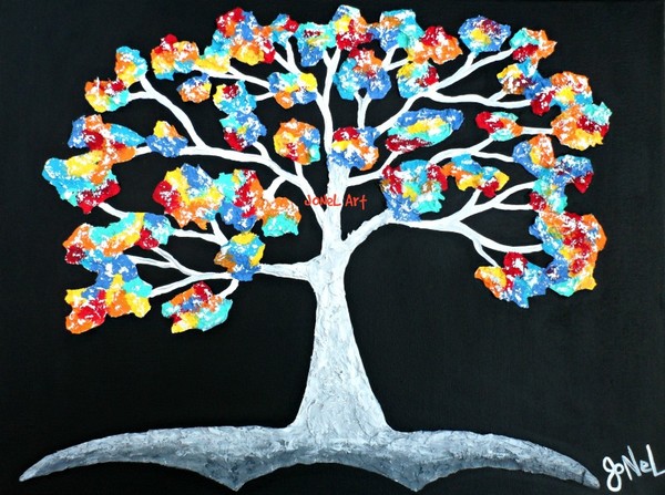 12"H x 16"W x .75" D - Textured, acrylic painting on canvas. Colors: Black,White,Red, Yellow, Teal,Orange, Purple- The side edges of canvas are painted to match. Painting has been sprayed with a protective finish and is titled, signed and dated on the back. (*Watermarks across images do not appear on original piece of art or purchased prints) © Copyright 2014-2017 JoNeL Art, All Rights Reserved. This original art may not be copied, printed, or used for any purpose without my written permission.