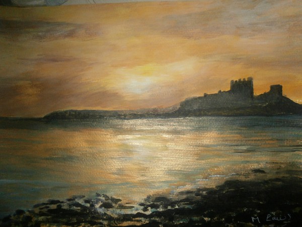 acrylic painting of bambrough castle ,original ,unframed ,size 15 x 10 inches