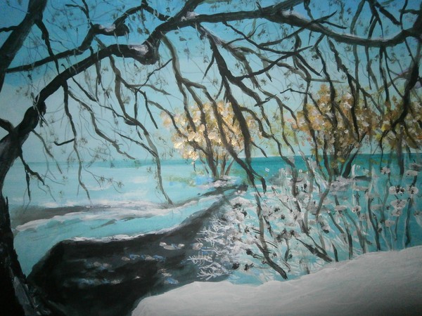 original painting of snow scene near river severn 15 x 10 inches unframed
