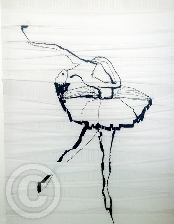 Grace, endeavour of the ballerinas is accomplished by 'the loop technique' - the use of an wool thread. Dimensions 120x80 cm