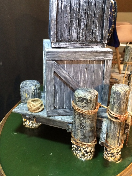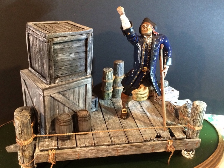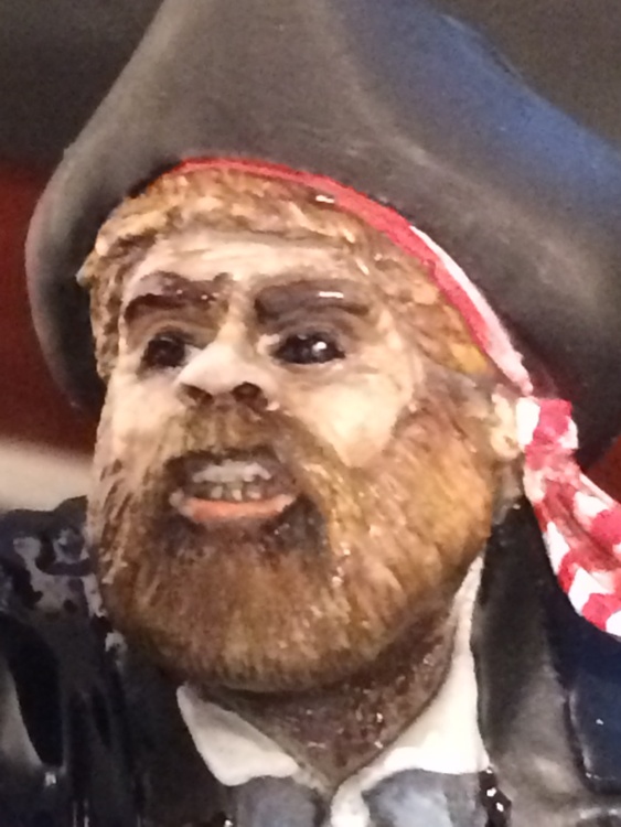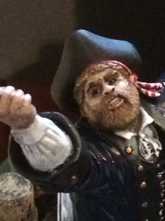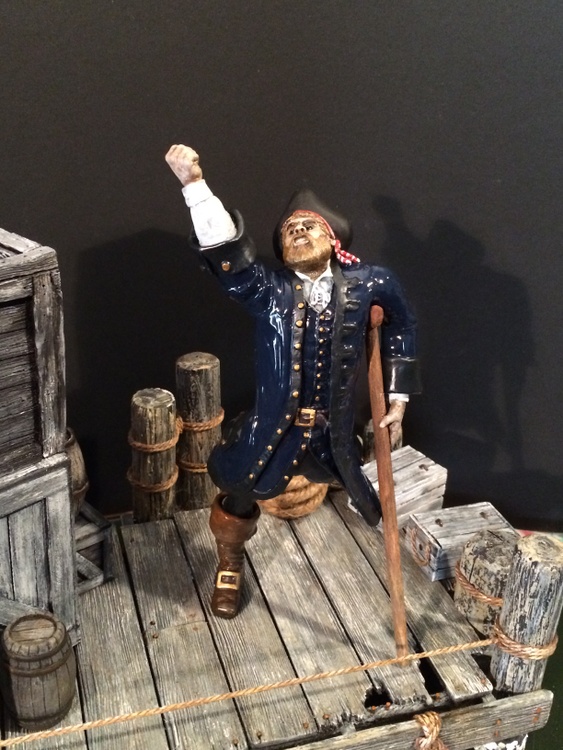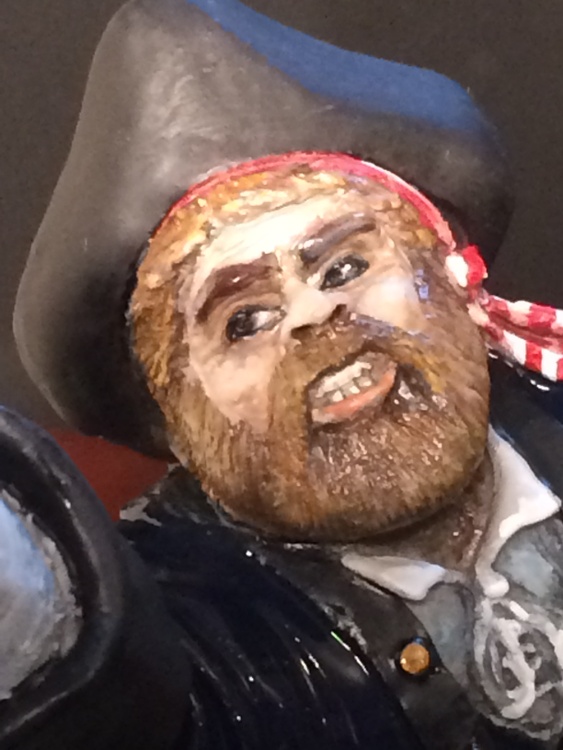 One of a kind ceramic and wood sculpture depicting a scene from the book Treasure Island. Oval base 18"x10", sculpture stands approx 12" high