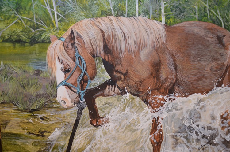 Artist Reply: Thank you! I love horses, and I love to paint water, so combined the two and this is what came of it!