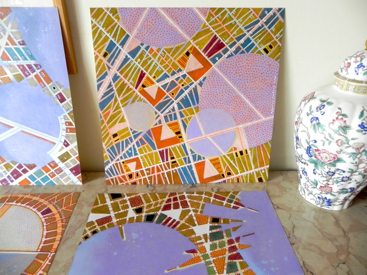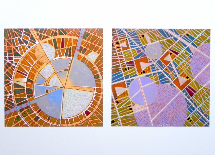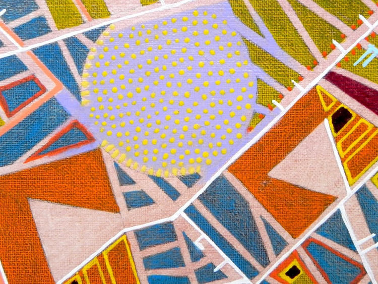 From the series “Code”, oil and graphite pencil on paper, 30 x 30 cm, 2016. Original sold. A map is an imprint, a sign of man in the landscape. An alien intelligence, observing our cities from the great distances of the space, could interpret them as the characters of an alphabet, sort of messages, a code of signs, each one different from the other, each with its own meaning and its own syntax. This hypothetical alien presence may not even realize that these cities have a purpose and a function, which are the product of the way we have adapted to live on this planet, but it could engage in an attempt to interpret this unknown language, identifying the alphabet and associating to each character a precise meaning. We will still be able to understand and share this new meanings, or will they have lost any sense for us?