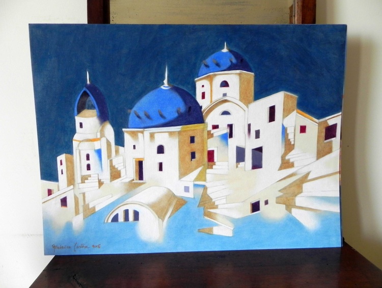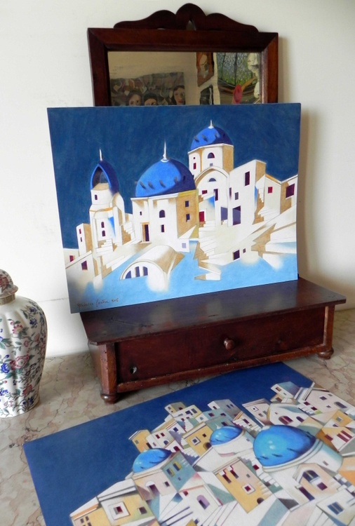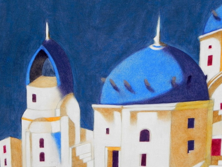 from the series “Houses on the water”, oil on Canson paper for oil painting (290 g/mq), 50 x 37 cm, 2016 (original sold). When, in my holidays, I go to visit a seaside town or a river town, it often happens that I am involved into the classic tourist trip on the boat, or vessel. Such an experience, by definition, is a little superficial: the distance from the coast, the movement, the limited time, all these elements combined together make the perception confused. But at the same time, perhaps for the fact that the focus can not dwell deeply on anything specific, the end of this experience gives a reminder of the whole, that could reveal the spirit of that place. It 's true, the details are confused, the facades of the buildings overlap, we are no longer sure if the front of that palace was on the Grand Canal or the Giudecca, but probably at the end of the journey, that will remain our most intense memory of Venice.