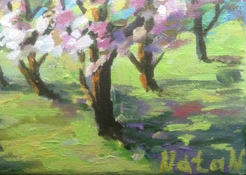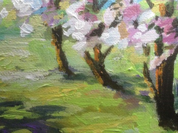 amazing blossoming tree in the spring size: 12*9 in (30.4*22.8 cm) materials: acrylic, canvas The canvas is stretched on a wooden stretcher, no frame needed, the edges are painted