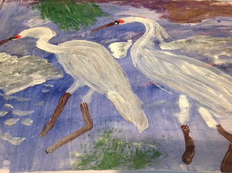 Crane couple i on the ocean