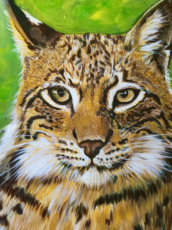 40x60x2 The bobcat is the most widespread member of the predator cat family, and can be found in North of America , Europe Fervent admirer of nature, Olga paints this portrait of a beautiful cat Expert brushwork captures every delicate nuance as Olga details the feline's spots, fur and whiskers. Most admirable is the crystalline look in the cat eyes . Signed on the front. She created this painting using fine artist oil paints which will not fade when they get exposed to UV light . This work is sold unframed and shipped in cardboard box which is very secure for shipping canvases Painting continues around the edges of the canvas giving a very contemporary style although it can be framed if you wish. This artwork will be dispatched from UK within 14 working days .