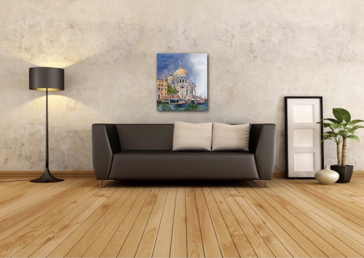 Venice . Crand canal . Santa Maria Della Salute . 45x50x2cm. Oil painting on stretched linen canvas. Ready to hang. It is the city of mirrors, the city of mirages, at once solid and liquid, at once air and stone. Signed on the front Certificate of authenticity . I created this painting using fine artist oil paints which will not fade when they get exposed to UV light This work is sold unframed and shipped in cardboard box which is very secure for shipping canvases