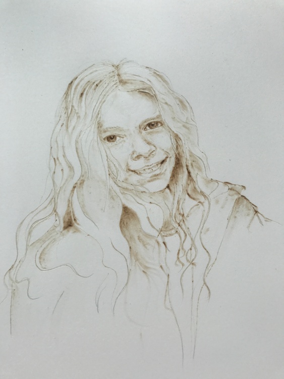 Pyrography on 10" x 12" 300g hp paper, I started Pyrography last September this is my first portrait onto paper.
