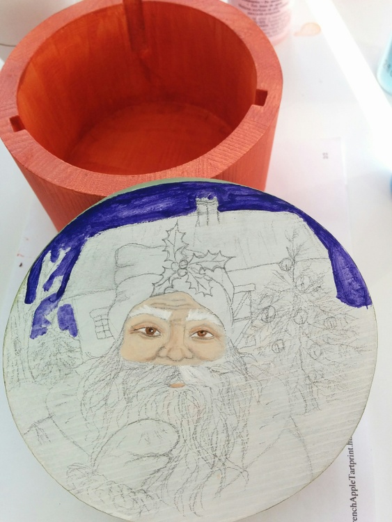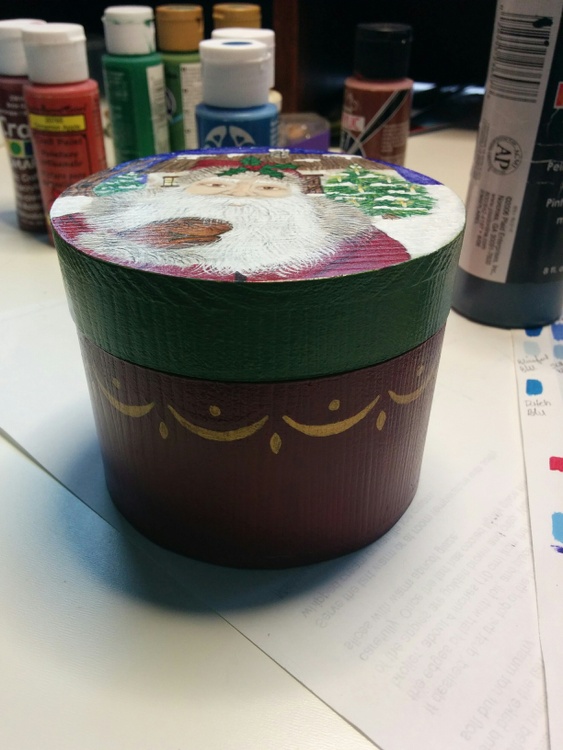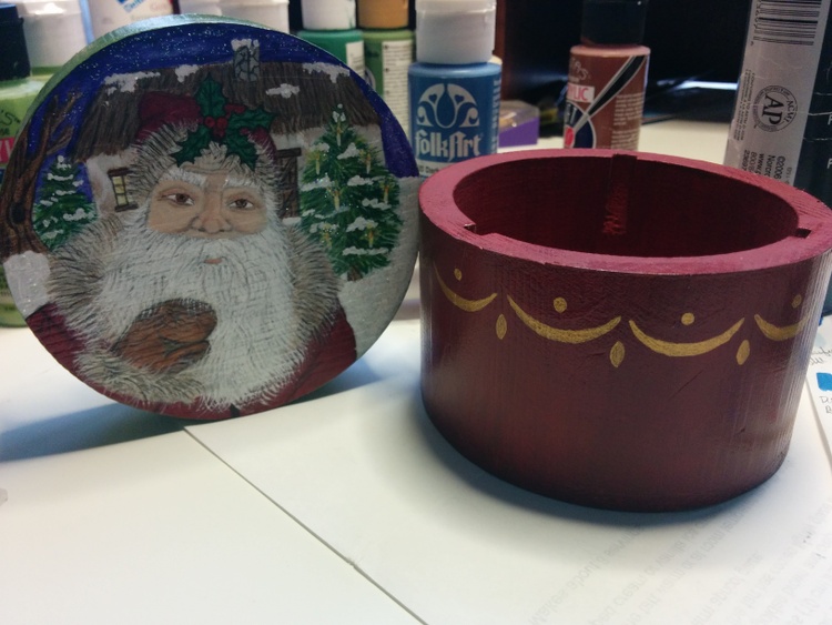 Hand drawn & hand painted round wood gift or storage for small trinkets.