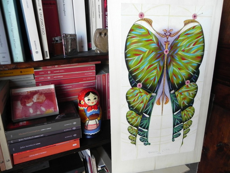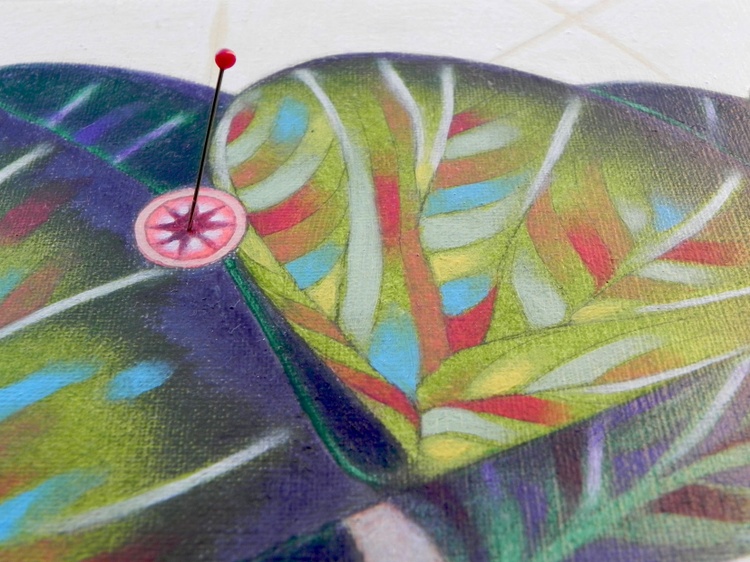 From the series “Please do not kill butterflies”, pins, oil and pencil on paper, 28 x 50 cm, 2016. ORIGINAL SOLD Please, all these dead animals ... Of course, not everyone of us can or want become vegetarian. Sure, in some cases, maybe, the medical experimentation needs them to get results. But we really have to kill them for our frivolous activities? ... Is it necessary to have so many pink pigs die in front of a camera? Do we really need to dissect sharks in formaldehyde, to starve stray dogs tied to a chain in the corner of a gallery, or to make innocent ants go crazy in twisted tubes of plexiglass? To make these drawings, no butterfly was killed.