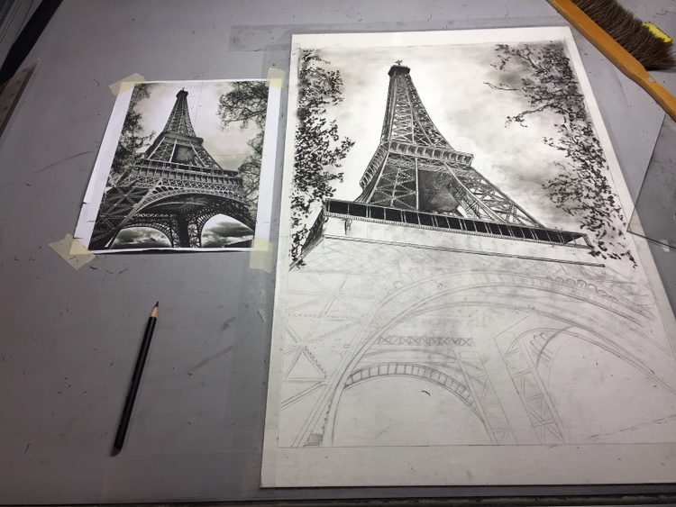 22"x14.5" Charcoal pencils Approximately 24 hours