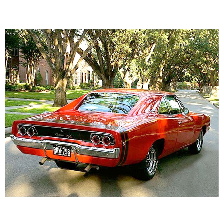The 1968 Dodge Charger was an American mid-size automobile. It was a complete departure (style-wise) from Dodge's mainstream cars. The first generation efforts wanted to look elegant & swanky but this was abandoned in favor of a double-diamond coke bottle profile (curves around front fenders & rear quarter panels) that included a spoiler rear end. The fastback roof styling gave way to the flying buttress look for the rear window similar to the1966-67 Pontiac GTO.
