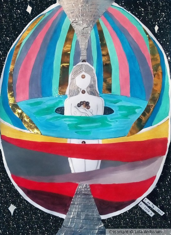 ~Collage, Gouaches on paper 25x35 & foil paper...Collage de témperas con aluminio y metalicos~