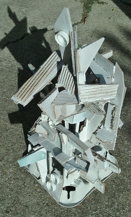 Cardboard and plastic bottle caps with spray paint
