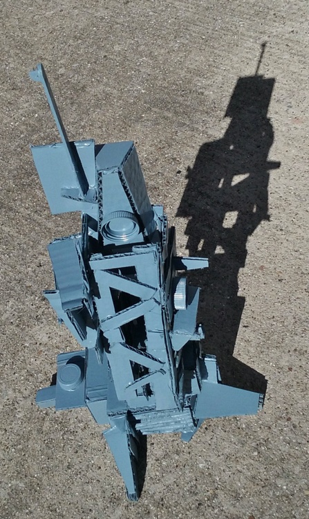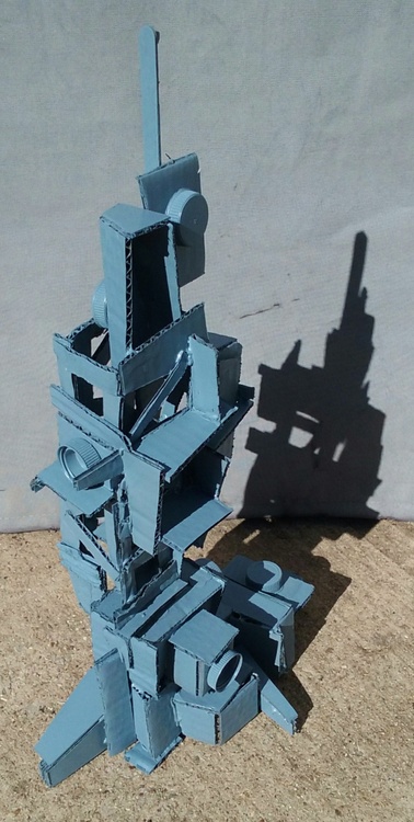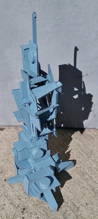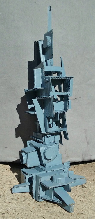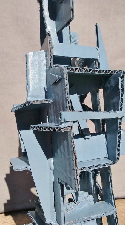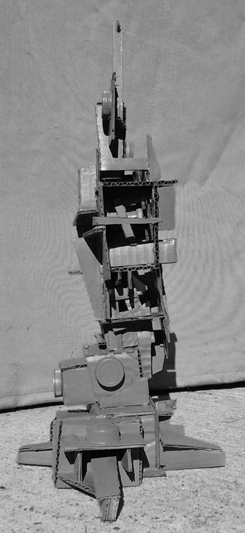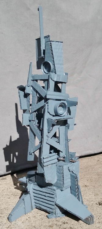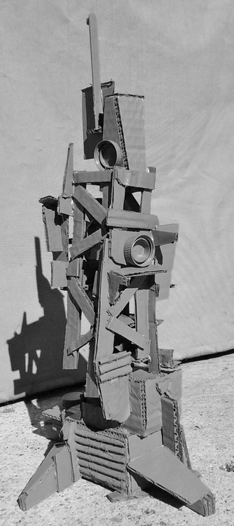 Cardboard and found objects with spray paint