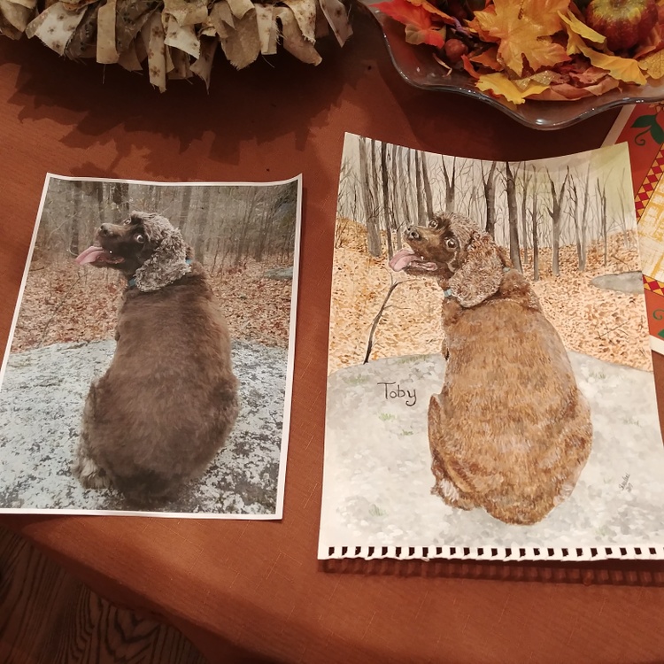 I create one of a kind, custom portraits of your pet, using your photos. I can change backgrounds and seasons.