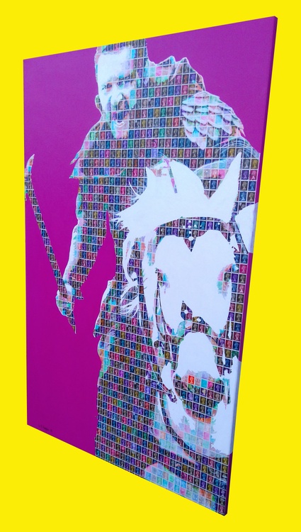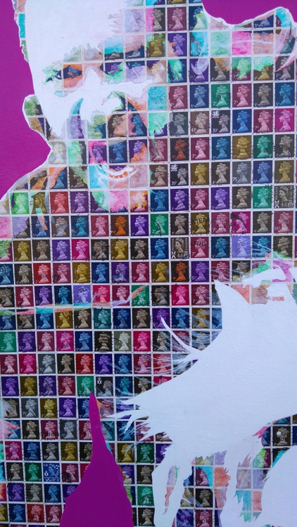 My take on the poster for the film 'Robin Hood' starring Russell Crowe, hand cut British stamps on canvas, finished off with acrylics and mat varnish.