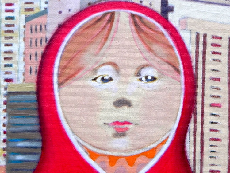 An original piece from the series “Red Star”, oil on canvas, 90 x 70 cm, 2017. Franz Kafka never moved from his Prague. For the setting of his novel "Amerika", he probably used the notions that he took from the newspapers and from his literary knowledge. Then he filled the gaps left by that information with his imagination, inventing a really comprehensive and credible setting. Today he wouldn’t have this problem, because the network provides us with detailed and substantial information on anything. The universal knowledge is available to all. And everyone, sooner or later run into the same two problems: this information is too much, we do not need it! (till the point that often we remain submerged and we do not know anymore what we were looking for). And then, how do we verify its authenticity? The virtual reproduction of the real world offered by the internet is so plausible, to make hard this verification. And often that virtual world is more attractive than the reality, to the point that this verification is not so important. Is this news true? Is this picture real? Or is it a montage? No matter, as long as it catches our attention. And this red star? Wasn’t it on the domes of the Kremlin? What is it doing on a skyscraper in New York? No matter, it's good enough ... In case of sale shipping is worldwide free.